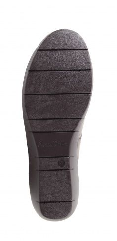 - Нескользящая подошва из полиуретана цельнолитого типа обеспечена небольшим подъемом в области пятки.