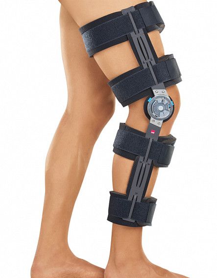 Ортез коленный регулируемый – medi.ROM cool – предназначен для иммобилизации коленного сустава после травм и в послеоперационном периоде. Ортез состоит мягкой подкладки, двух стабилизирующих металлических пластин с моноцентрическими шарнирами и четырех ремней. Мягкая подкладка под ремнями выполнена из вспененного полиуретана, что позволят достаточно сильно натянуть ремни (с целью иммобилизации), не причиняя пациенту дискомфорта.